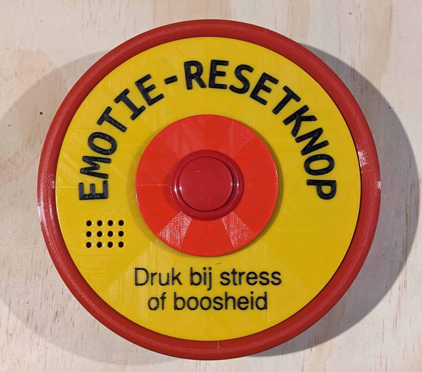 Een grote rode knop voor thuis of op werk, bedoeld om je te helpen op momenten van stress of overprikkeling. Met één druk op de knop helpt hij je je emoties te ontladen.