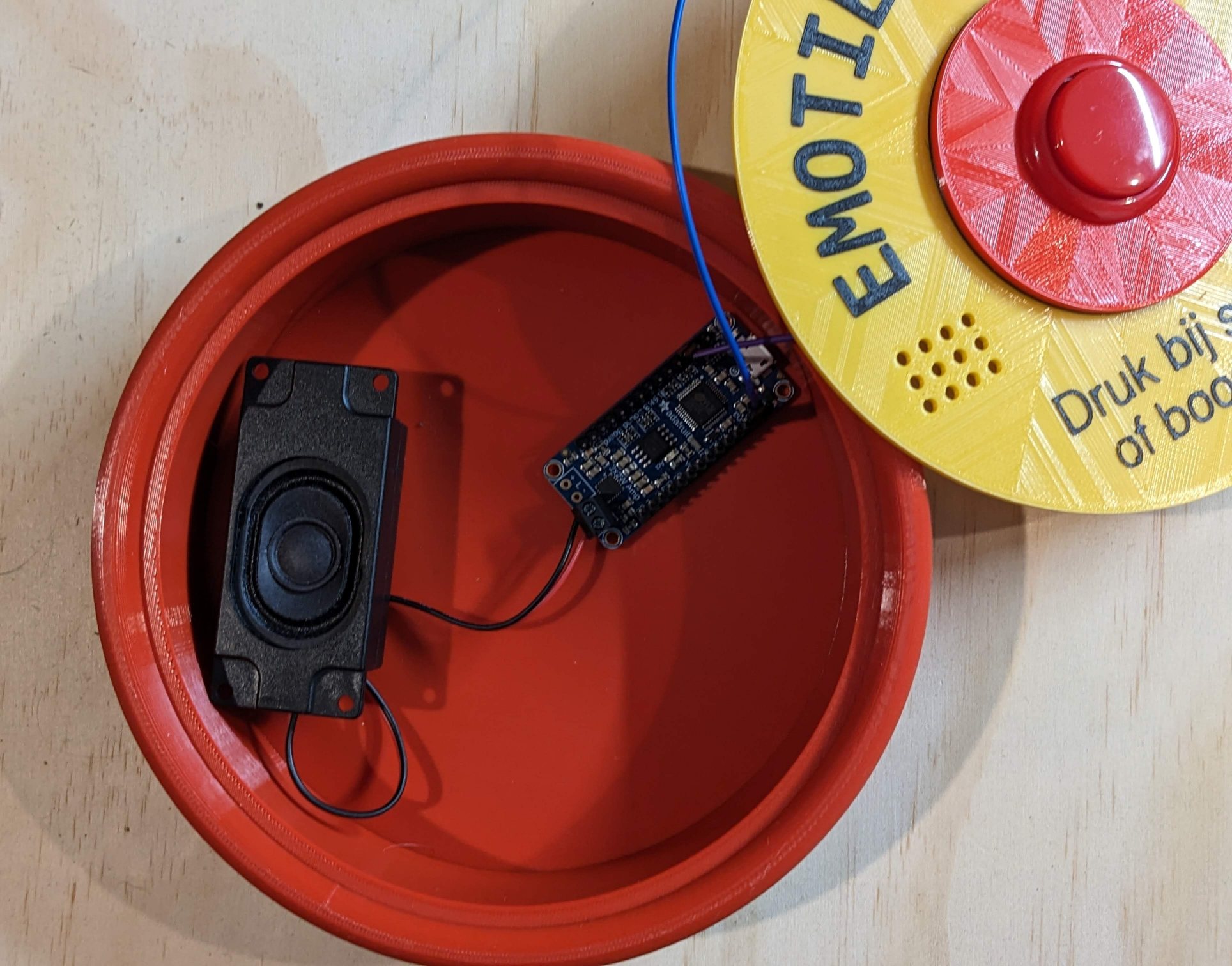 Nodig: Adafruit FX Sound board, grote arcadeknop en geprintte behuizing.