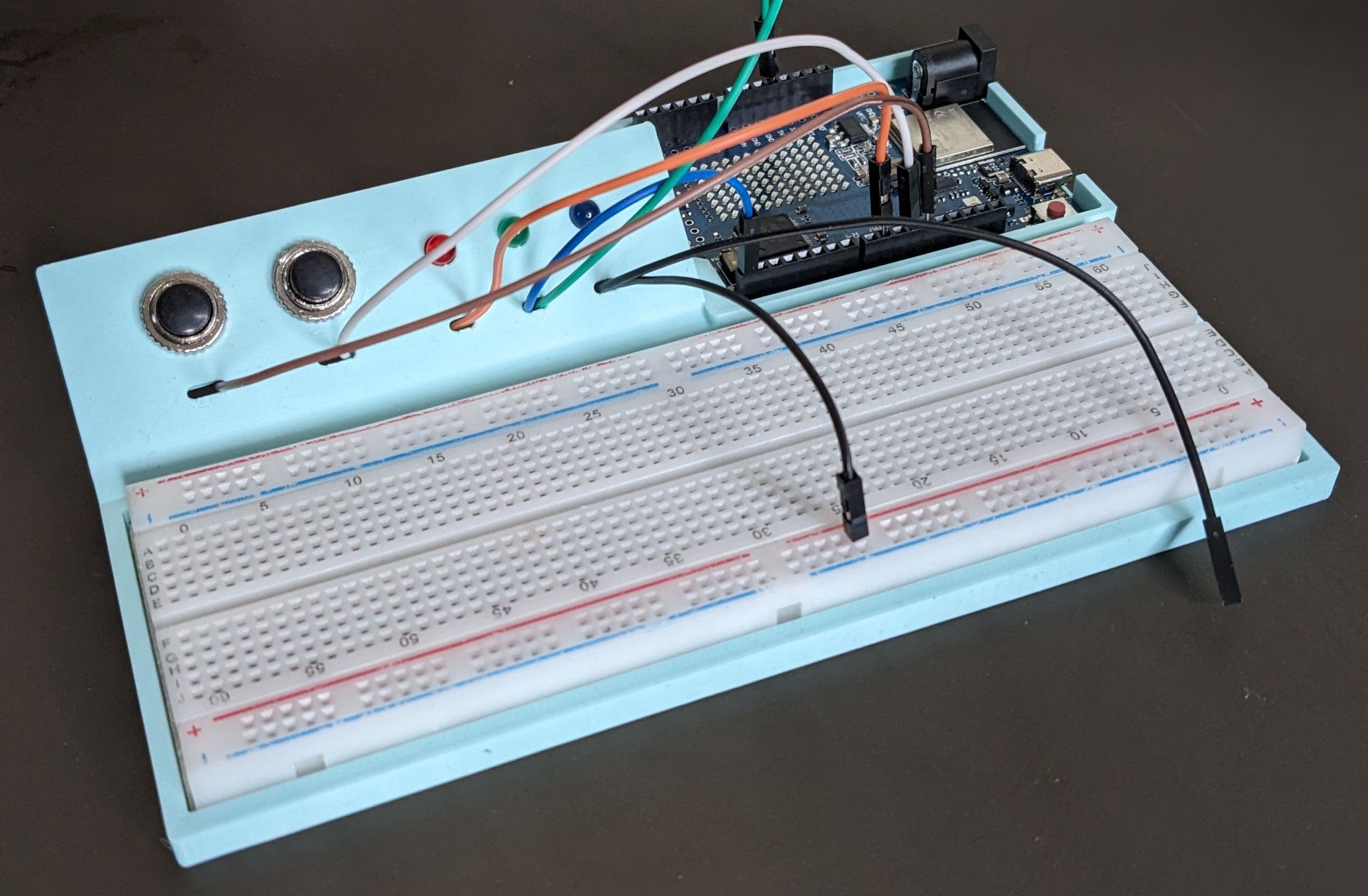 Dit scheelt in de netheid bij het prototypen omdat je voor alle schakelaars en LED's je een gemeenschappelijke massadraad hebt en je geen LEDjes en switches hoeft te prikken op je breadboard.
