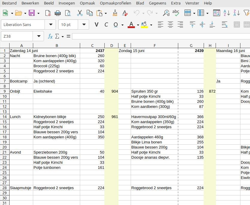 Mensen die letten op hun dieet - zoals ik - houden soms een eetdagboek bij. Ze schrijven gedurende de hele dag op wat ze eten zodat ze inzicht krijgen in bijvoorbeeld het aantal calorieën dat ze binnenkrijgen. Maar dat is veel werk. Zelfs met een 'handige' app is het een administrafief rotklusje. Op de afbeelding hieronder zie je hoe ik dat deed: ik gebruikte een spreadsheet waar ik alles wat ik at in noteerde.